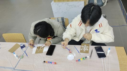 在匠心非遗板块,工作室通过节气梳理,配合相关非遗传统文化活动,如小雪时节,一场 “盐绘冬韵” 盐画创作活动在校园内悄然展开。在活动现场,大家用细盐,以独特的艺术视角和精湛的创作手法,在画板上勾勒出一幅幅生动的冬日图景,每一幅作品都凝聚着创作者对小雪节气的理解与感悟。盐画作为一种小众却极具特色的艺术形式,不仅让大家感受到了艺术创作的乐趣,更在动手实践中体会到了冬日的诗意与浪漫,为寒冷的季节增添了一抹温暖的艺术色彩。