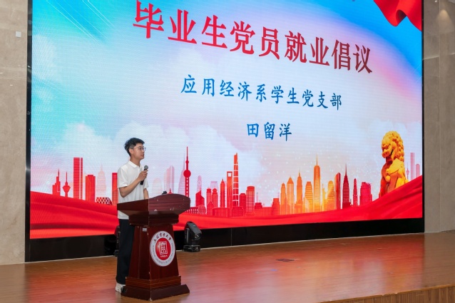 其次,党员代表田留洋宣读就业倡议,号召全体毕业生党员提高政治站位,积极投身就业实践,发挥先锋模范带头作用,主动宣传政策,增强防骗意识,将个人奋斗的“小目标”融入国家发展的“大蓝图”,争做“一面旗帜、一个堡垒”。