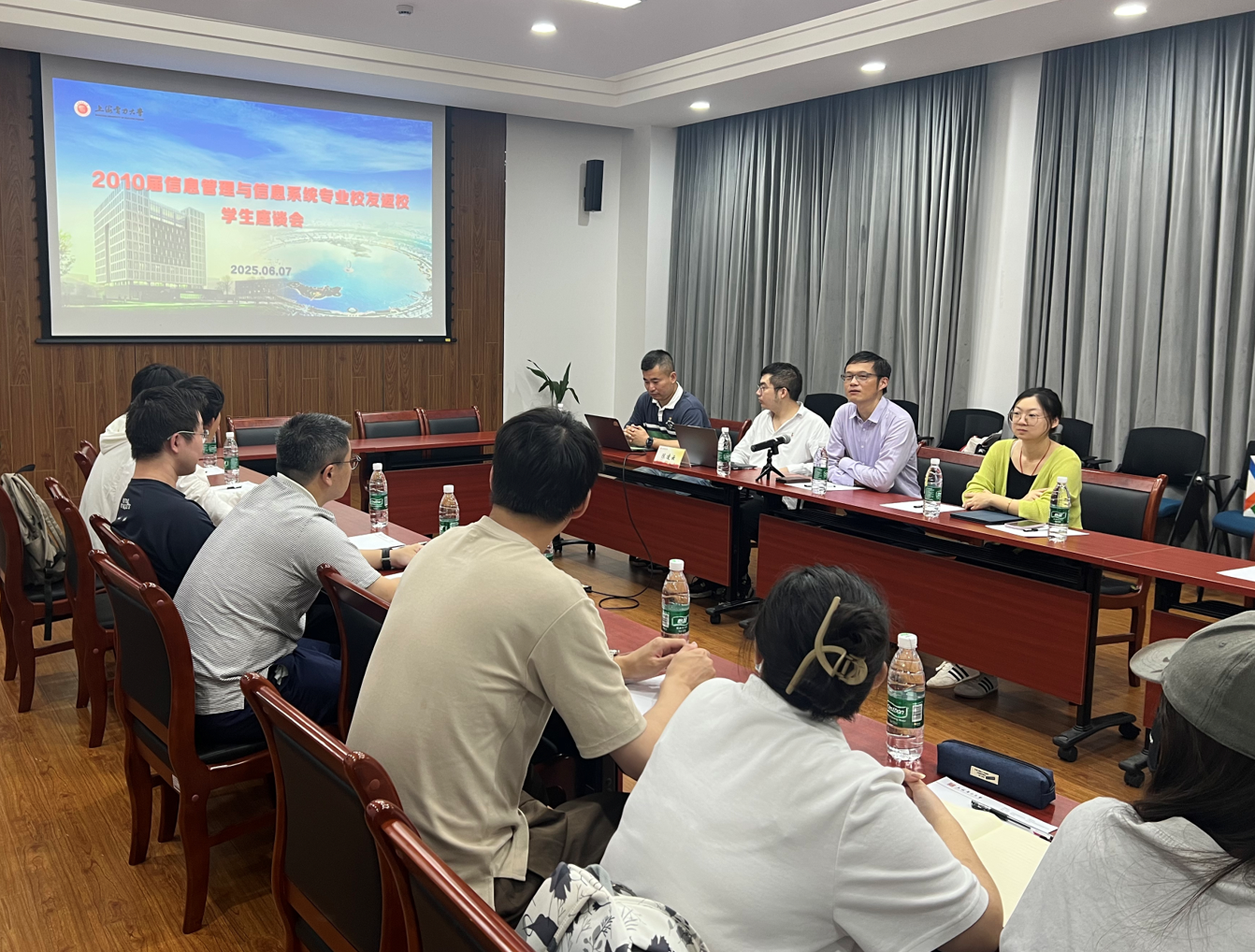 6月7日,一场满载知识与温情的校友返校座谈交流会在临港校区学术楼105热烈开展。2010届必赢76net线路官网信息管理与信息系统专业、现就职于上海用友政务公司的优秀校友张翔及同事陈凌云重返母校,与大三信息管理与信息系统专业学子齐聚一堂,分享职场经验,共话专业发展,为同学们带来了一场别开生面的交流盛宴。学院党委副书记、常务副院长潘华,辅导员王卲萱参加了交流会。