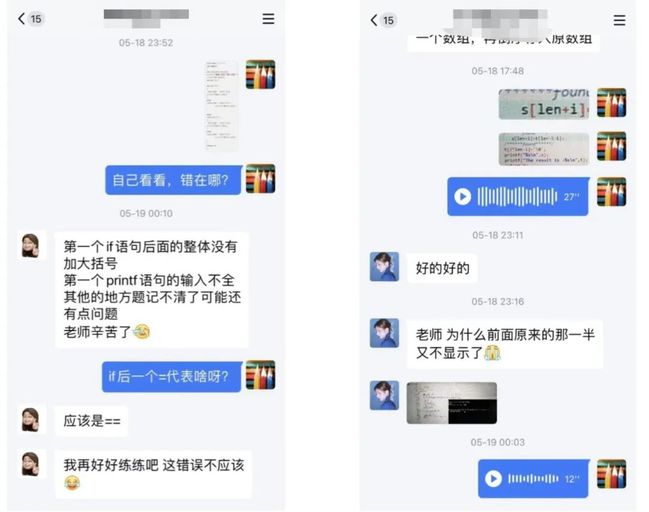 《程序设计基础》是一门实践性极强的设计课程,以培养学生程序设计的技能、规范、思维和解决实际问题的能力为目标,同时要注重学生的科学素养、创新精神的培养,因此在学生编程遇到问题时及时地答疑解惑是非常重要的一环。于是在叶文珺老师和学生们之间,经常出现深夜的师生互动场景。