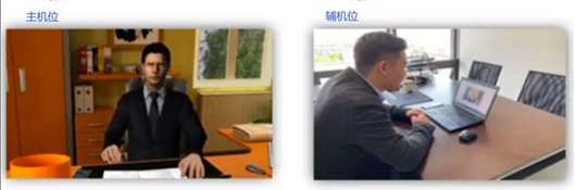 复试前按要求安装调试好设备。考生端两台设备开启摄像头,主机位自带摄像头对准考生本人,辅机位手机摄像头从考生后方成45°拍摄。要保证主机位屏幕能清晰地被复试专家组看到。见附图:
