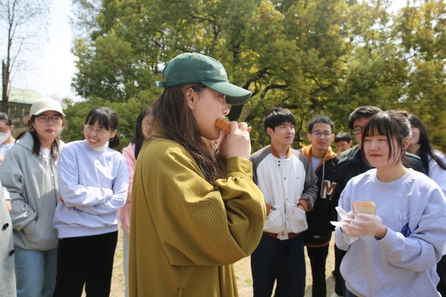 40人分为4组,A、B、C、D四组,每组10人。A组与B组猜拳、C组和D组猜拳,输的一方吃盘中的面包,其中包含抹了抹茶酱与芥末酱的面包,由另一组通过观察对方表情变化来判断对方吃的是哪种酱的面包,若猜对了由猜的一方获胜,若猜错则由吃面包的一方获胜,依次轮十次。最后得分高的队伍获胜。
