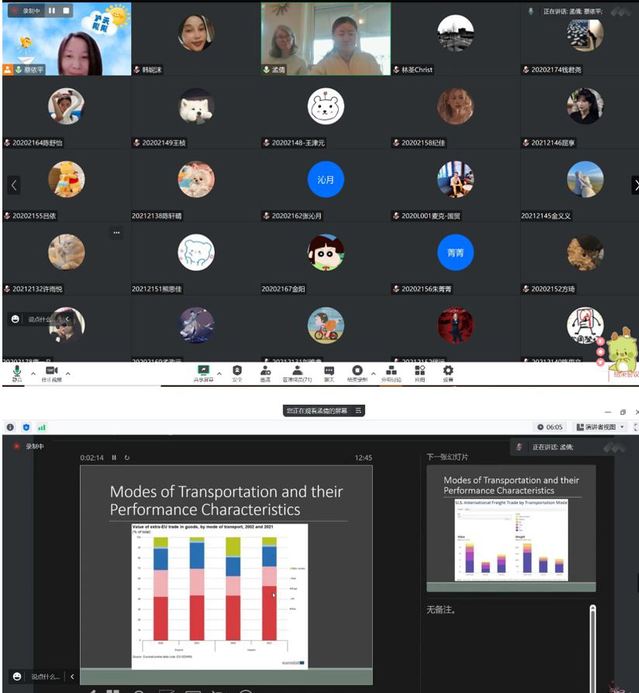 4月6日,学院管科系邀请了挪威东南大学副教授孟倩及其助教琳娜以腾讯会议形式为必赢官网物流管理专业2020和2021级、国际经济与贸易专业2020级、留学生2020级学生共计70余人开展以“国际供应链中的运输”为主题的讲座。讲座内容主要包括:运输在供应链中的作用、各种运输方式及其绩效特点、基础设施与政策以及运输网络的设计。讲座最后,参与师生与两位主讲人就未来的运输方式等主题积极展开交流互动,反响热烈。