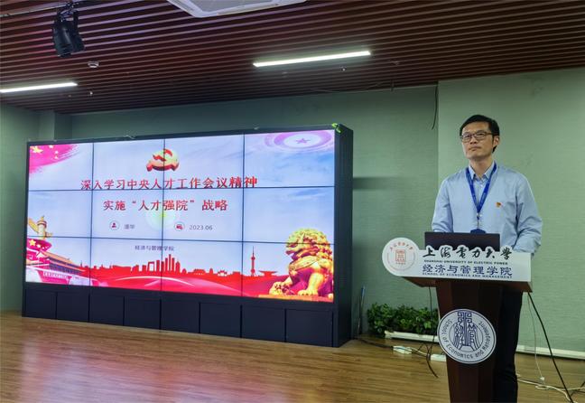 潘华以“深入学习中央人才工作会议精神,实施人才强院战略”为主题,从全面贯彻新时代人才工作新理念新战略新举措、加快建设世界重要人才中心和创新高地、深化人才发展体制机制改革、全方位培养、引进、用好人才、学院实施人才强院战略设想五个方面讲授专题党课。他谈到,党的二十大报告强调“教育、科技、人才是全面建设社会主义现代化国家的基础性、战略性支撑”,师资队伍建设水平直接关系到学校的教学、科研和人才培养质量。为了建设一支结构合理、素质优良、高效精干的师资队伍,学院拟在师德师风建设、师资队伍结构、高层次人才引进、青年教师培养等方面下功夫。