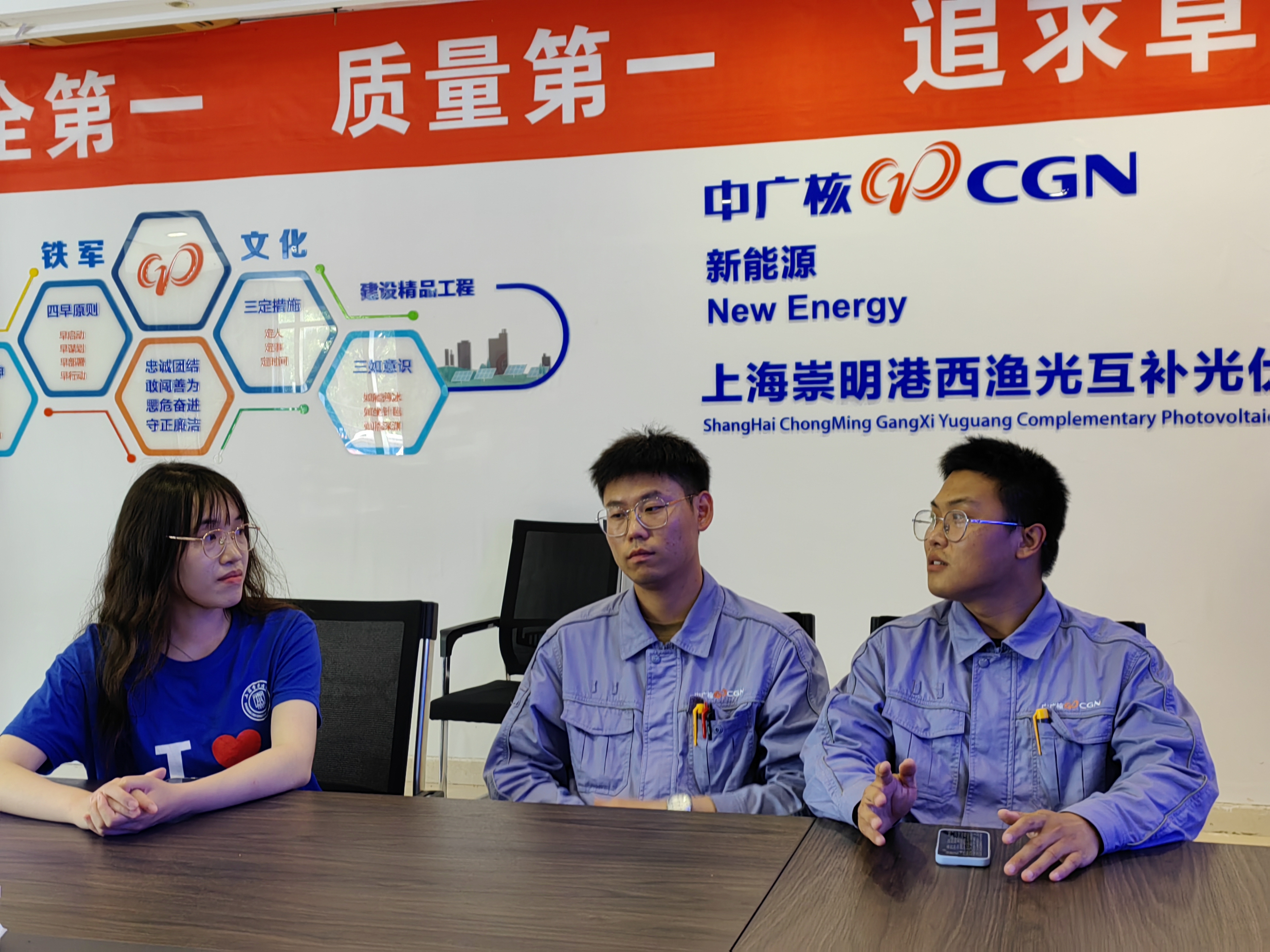 探寻民情民意,集中思维碰撞。实践前期,队员们分别前往港西镇新港村、中兴镇的中兴村、北兴村、永隆村,通过调研在建的渔光互补基地、拜访养殖户、未开发渔光互补产业的鱼塘负责人以及光伏产业的工作人员,深入了解崇明渔光互补项目从建设到发展的现状和面临的问题、渔光互补的优势和特点,明确了此项目对于崇明地区经济发展的重要推动作用。