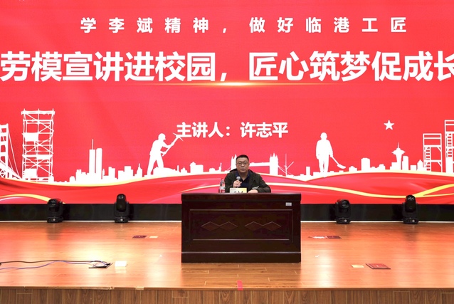 在讲座中,许志平首先向同学们介绍了自己的“无名英雄养成记”。告诉同学们雄心壮志要从小培养,无论是学习还是工作都要一直秉持着艰苦奋斗、争分夺秒的习惯。随后,许志平深入浅出地解释了“李斌精神”的内涵和特点,指出这种精神是劳模之间互相学习进步的重要方式。他强调,学习李斌精神意味着要具备创新意识、追求卓越和精益求精的工匠精神。并鼓励同学们要不断学习、不断进步,成为具有高素质和专业技能的人才。最后,许志平给提出了“做好临港工匠”的要求。他鼓励同学们要有责任感和使命感,为临港区的发展做出贡献;要耐得住寂寞,有钻研精神,只有真正热爱自己的学习和工作,才能做到精益求精,不断提高自己的能力。