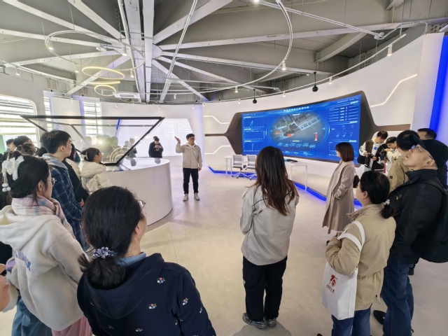 随后,师生来到了“杨浦滨江党群服务站·杨树浦驿站”,学习了解了杨浦从“工业杨浦”到“知识杨浦”再到“创新杨浦”的转型升级之路,身临其境地感受到杨浦从“工业锈带”到“生活秀带”的华丽变迁。最后,一行人来到了“杨浦滨江党群服务站·电站辅机厂站”,电站辅机厂站坚持以党建引领为主线,深化传承杨浦红色基因深厚底蕴,采用“移动屏”等技术手段,融合展现了杨浦百年工业、百年大学、百年市政“三个百年文明”发展历程。师生们在服务站还体验了互动装置,通过滨江客厅虚拟现实骑行自行车,身处室内纵览滨江沿线全景,感受现代科技的无限创意。通过参观杨浦滨江的党群服务站,让师生们切身体会到了“人民城市人民建、人民城市为人民”的建设理念。