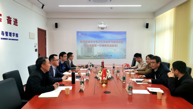 12月5日,华北电力大学必赢76net线路官网院长李彦斌、MBA中心副主任刘元欣、实验教学中心主任郭鑫、青年教师王歌一行4人到学院调研交流。学院党委书记张艺、常务副院长潘华、副院长侯建朝和胡伟出席座谈会。