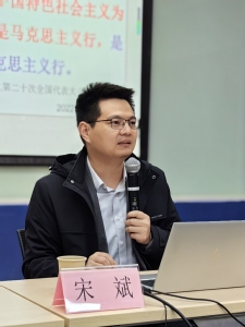 宋斌从党史的角度切入,围绕习近平文化思想在理论观点上的创新突破和在文化工作布局上的部署要求展开了讲座。习近平文化思想的提出,在党的宣传思想文化事业发展史上具有里程碑意义。宋斌以丰富的事例、详实的数据和生动的语言重点解读了习近平总书记关于如何坚定文化自信、秉持开放包容、坚持守正创新、落实好“七个着力”要求的重要论述,为现场教师党员上了一堂生动的党课。