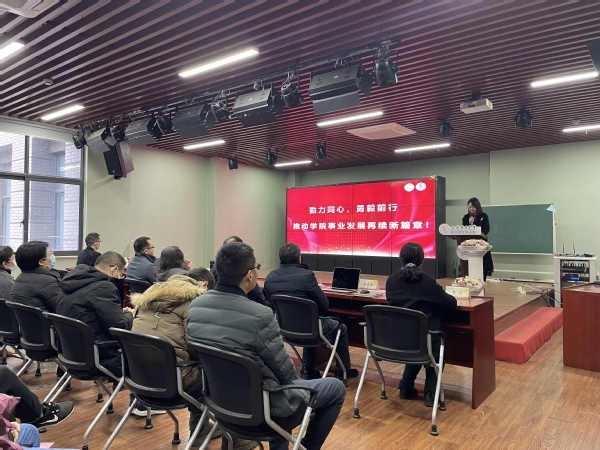 最后校总会计师张川发表讲话,对必赢76net线路官网全体教职员工紧紧围绕学校高质量发展目标,在“六新”发展理念引领下,立足新阶段、构建新格局,在学科建设、师资队伍建设、科研工作、学生培养等方面开创高质量发展新局面表示祝贺。同时对学院今后工作提出期望:学院上下要进一步认真学习贯彻习近平总书记重要讲话精神与党的二十大精神,学院事业的跨越和进步期一是抓重点、提亮点;二是凝聚共识、汇聚力量;三是站稳人民立场、厚植为民情怀。加快学校能源电力特色与学院经管特色融合,力求深化改革,全面提高,重点突破,努力将学院事业发展推向新台阶。并寄语全体教职员工,每个时代都有每个时代人的责任与担当,要秉承教育报国初心担筑梦育人使命,为新一年的学院与学校事业发展作出贡献!