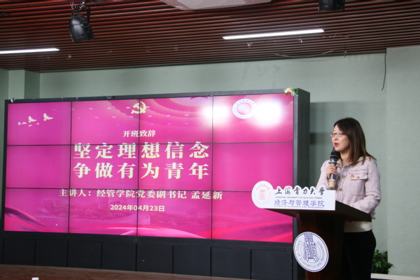 首先,孟延新作开班致辞。她指出,学院历来重视党员发展工作,着力加强对入党积极分子和发展对象的培养和教育,希望通过本次培训班的学习,全体学员能够加强党性修养,提高政治素质。孟延新向全体学员提出三点要求:其一要明确学习目标与定位,端正学习态度,珍惜党校培训班的机会;其二要善于学习,精于思考,做到学以致用、用以促学,学用相长,积极将理论与实践相结合;其三要遵守党校学习纪律,高标准高质量完成各项学习任务。
