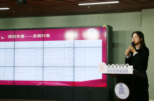 接着,周颖介绍了培训班的课程安排和外出实践注意事项,希望全体学员端正个人入党动机,做到在思想上入党,在行为上入党。