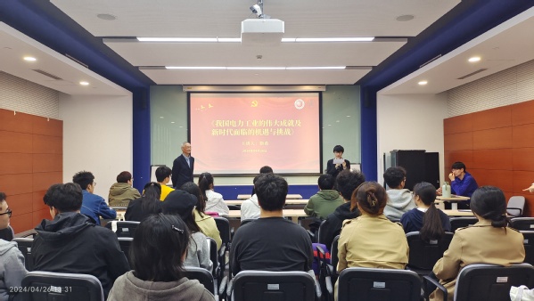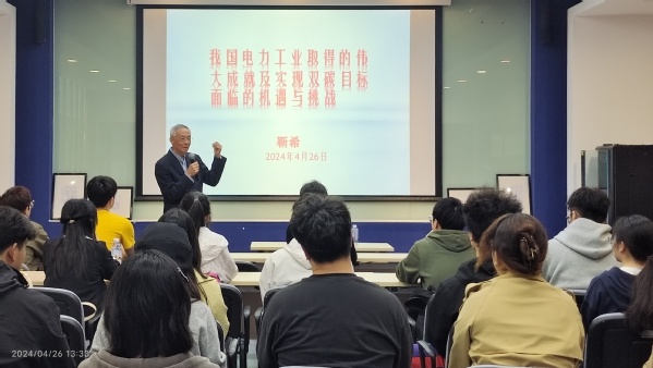 讲座中,靳希带领同学们深刻讨论了以人为本的电力工业发展策略。中国电力时刻牢记毛主席的指示“人民电业为人民”。随着科技进步和产业升级,我国电力工业正逐步向智能化、绿色化转型。在此过程中,保障和改善民生、实现全民共享科技进步成果,是必须坚持的发展理念。面对全球气候变化的严峻挑战,中国提出“碳达峰”与“碳中和”的双重战略目标,在这一宏伟蓝图中,作为能源消费和碳排放的主要来源之一,电力行业必将引来前所未有的挑战与机遇。