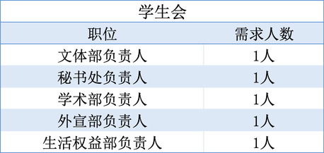 注:其中竞选学生会骨干政治面貌需为共青团员(含预备党员),学年成绩需达到专业前30%,且无课业不及格情况。