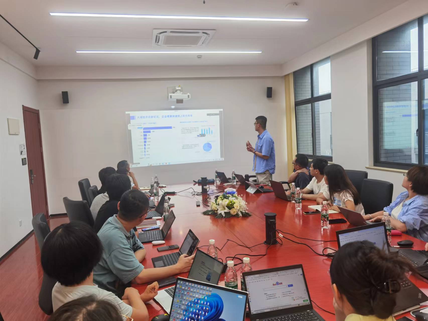 本场专题辅导由智谱科技苏俊天、宋嘉琪两位老师进行主题分享。其中,苏俊天介绍了智谱科技全线大模型基座及能力,宋嘉琪通过产品演示形式,直观展示智谱AI大模型产品能力及实际应用效果,重点介绍了面向科研领域的AMiner科研助手、塔尖人才、AIWorkflow等产品及案例,并提供实战操作环境,引导参训教师亲手体验智谱AI的相关功能和应用,解答参训教师在操作过程中遇到的问题。互动环节,与会教师就如何进行文献提炼、如何与现有数据库对接、如何保证私有内容安全、论文润色等问题进行了探讨和交流,两位老师进行了耐心解答。