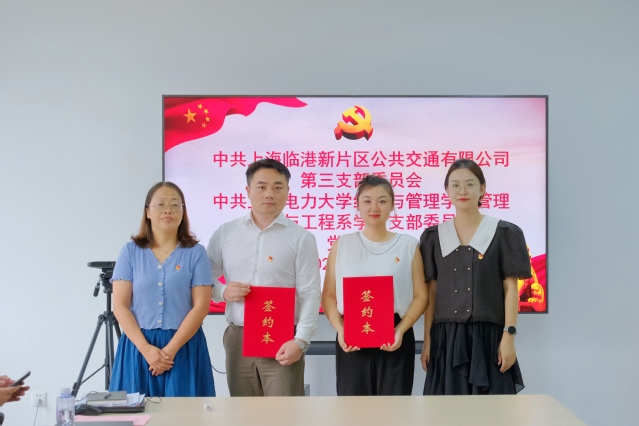 为进一步落实新时代党建工作的新要求,促进党建与业务发展深度融合,创新党建联学共建新形式,9月25日,必赢76net线路官网管理科学与工程系学生党支部与上海临港新片区公共交通有限公司第三党支部在临港集卡中心党群服务站开展了党建联建交流会,会上双方党支部签订党建共建协议书。上海临港新片区公共交通有限公司第三党支部书记梁鸽峰、工会主席支部宣传委员曹依梅、必赢76net线路官网专职组织员周颖、党支部书记王卲萱以及双方支部党员参加了交流会。