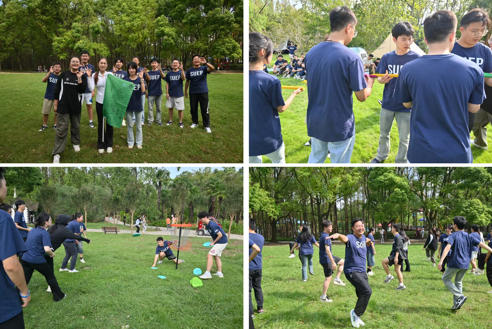 团建活动丰富多样、朝气动感,包括体操热身、群龙取水、携手并进、极速追击、不倒森林、激情节拍、飞盘投篮、同心鼓、众志成城等项目,有趣味游戏、团队竞赛、心得分享,妙趣横生。趣味游戏环节让大家在轻松愉快的氛围中展现自身才华,增进彼此了解。团队竞赛环节中,同学们随机分成三个组,自由设计队名、队标与口号,共同迎接挑战,需要相互协作、沟通配合才能取得成功,获得相应分数。竞赛活动中既有队长的周密安排与鼓舞士气,也有队秘的出谋划策,更有队员们的积极配合。携手并进游戏要求所有队员排成一排,将自己的脚与相邻同学的脚绑在一起,从起点一起跑向终点,心意相通、步伐协调才能获胜。同心鼓项目,队员各自拉动一根绳子,协同控制一面大鼓撞击并接住小球,单位时间内击球多者胜。同学们在活动中展现出极高的团队精神和合作意识,不仅积极参与各项挑战,还相互帮助、相互鼓励。通过共同攻克难关,大家加深了对团队合作的理解,更收获了成功的喜悦,最后本次活动在欢快开心的经验分享中圆满结束。