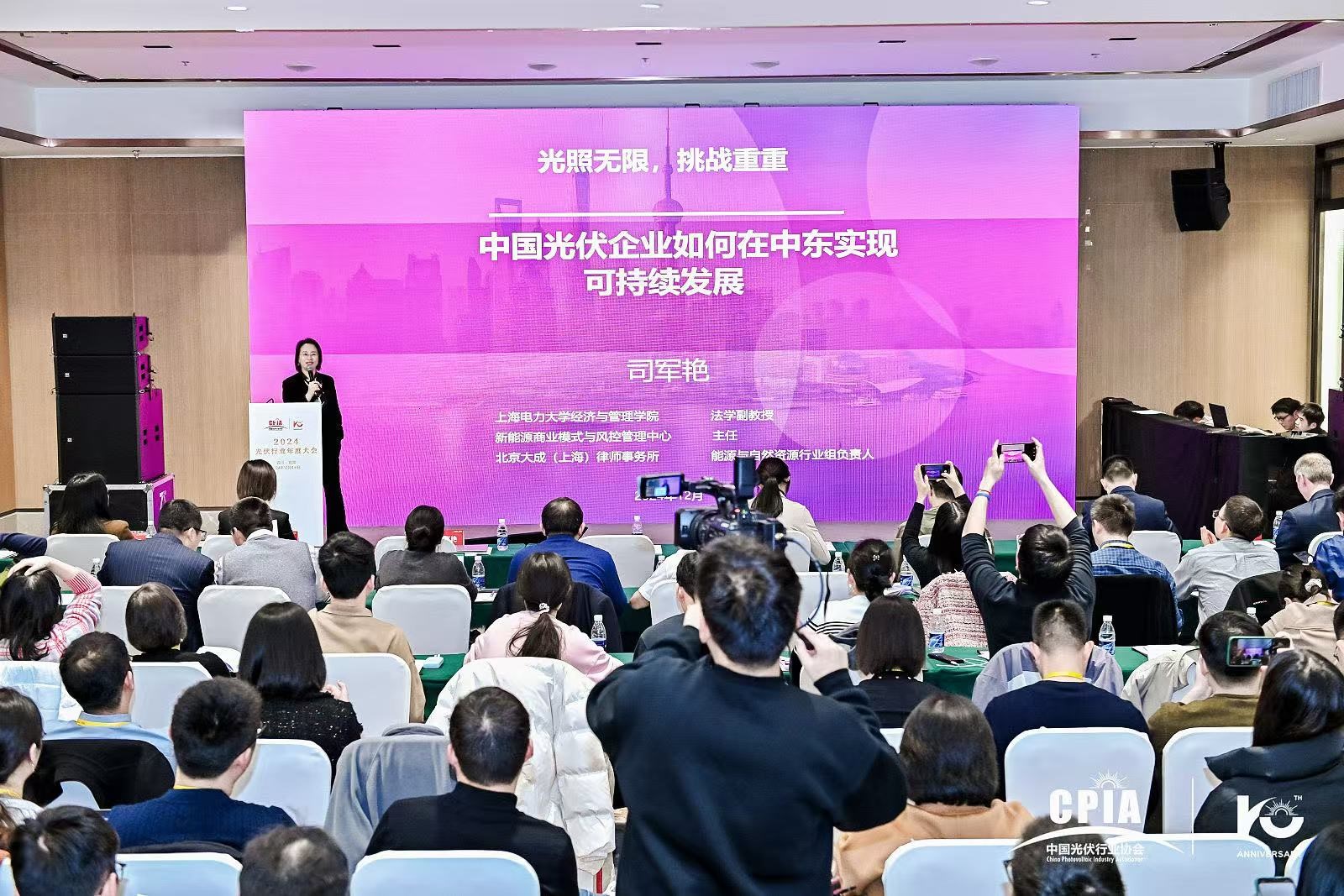 随着全球能源转型的加速,中东地区凭借其得天独厚的光照资源和积极的能源政策,正逐渐成为中国光伏企业出海的新热点。2024年12月5日,由中国光伏行业协会主办的“2024光伏行业年度大会”在四川省宜宾市举行。必赢76net线路官网司军艳副教授受邀在大会“海外光伏市场分析及投资机遇研讨会”中作“光照无限,挑战重重—中国企业如何在中东实现可持续发展”主题发言。
