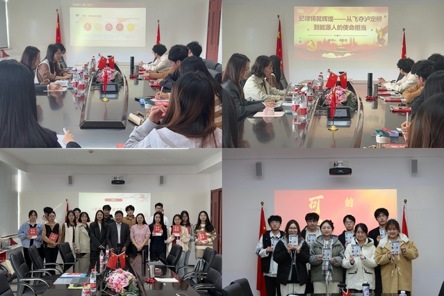 为弘扬爱国主义精神,培养青年学子坚定的理想信念与深厚的家国情怀,养成爱读书好读书的习惯,学院分党校针对发展对象开展读书班系列活动。学院关工委老党员周军、年轻教师党员朱文沛、蒋寅分别领学《党章故事》《可爱的中国》等书。通过本期读书班,发展对象们深刻认识到自身肩负的历史重任与时代使命,决心在强国建设、民族复兴伟业中发挥先锋力量,以实际行动践行爱国主义精神,为祖国的繁荣昌盛贡献青春力量。
